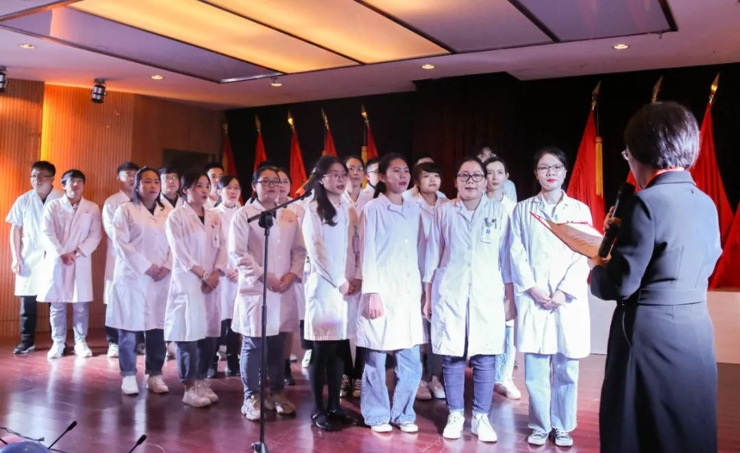 王会庆书记宣读了对“优秀住培医师”的表彰决定,她说:“吾生也有涯,而知也无涯”。毕业不是学习的终结,而应该是新的学习阶段的开始,凡是过往,皆为序章,希望同学们未来能坚持学习、不断进取,知行合一。