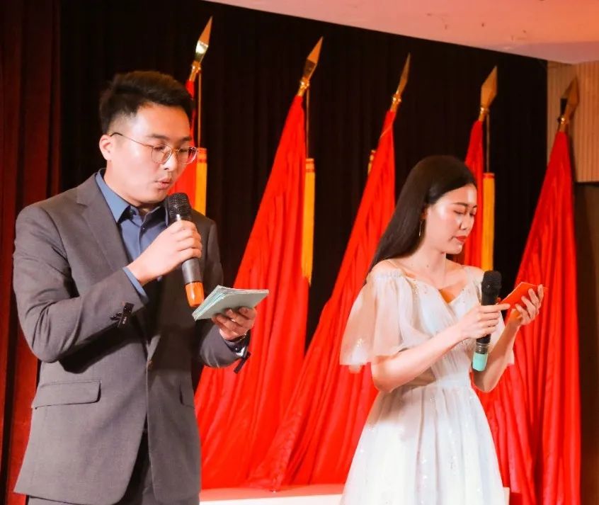 全科专业基地老师杨坤和2019级全科住培医师杨静作为文艺晚会主持人,宣布毕业典礼文艺演出正式开始。
